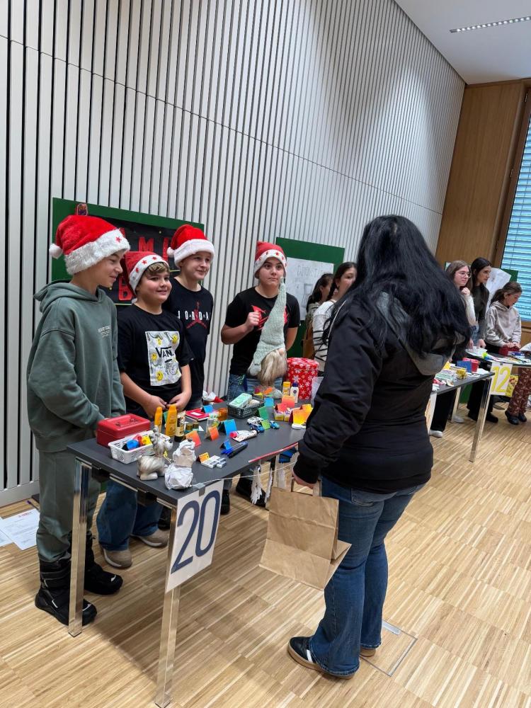 Am Freitag, dem 5. Dezember, fand der große Verkaufstag in der WKO Imst statt. Dort holten sich die Kinder einen Gewerbeschein, mieteten einen Marktstand und richteten ihn her. Mit Hilfe von Schüler:innen der Handelsakademie Imst versuchten sie dann, Eltern und Verwandte zum Einkaufen zu bewegen – und das gelang ihnen sehr gut.