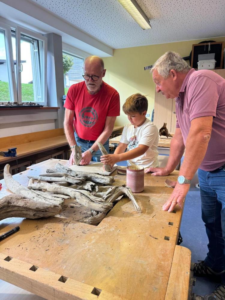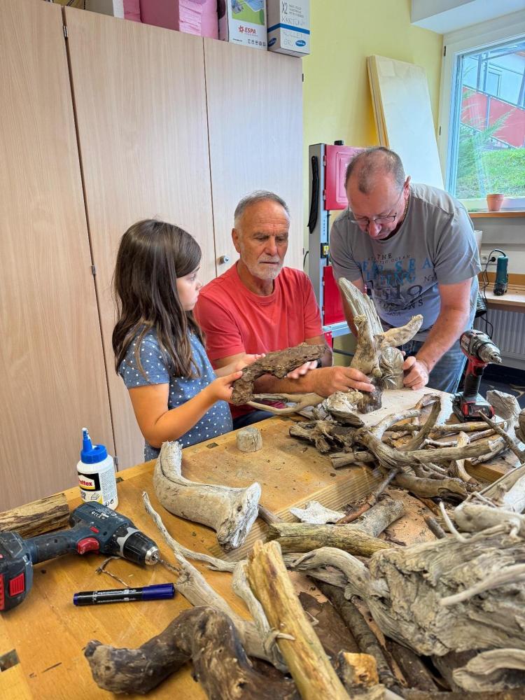 Am Ende dieser sechs Wochen entstanden wunderbare, individuelle Krippen, auf die alle Beteiligten mit Recht stolz sein können. Unsere vier Kursleiter bewiesen nicht nur ein sicheres Händchen für Holz, sondern auch für Humor.