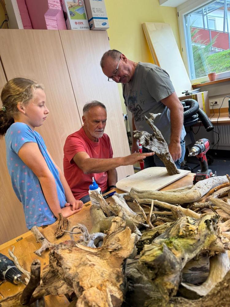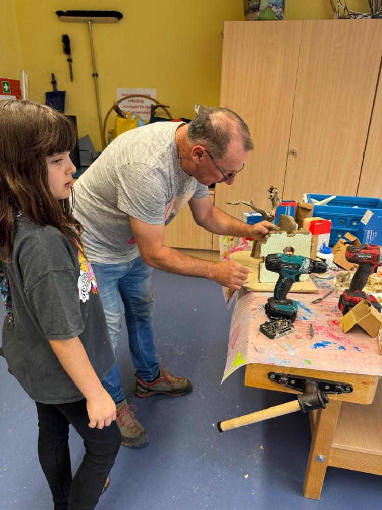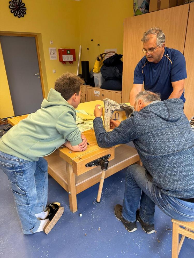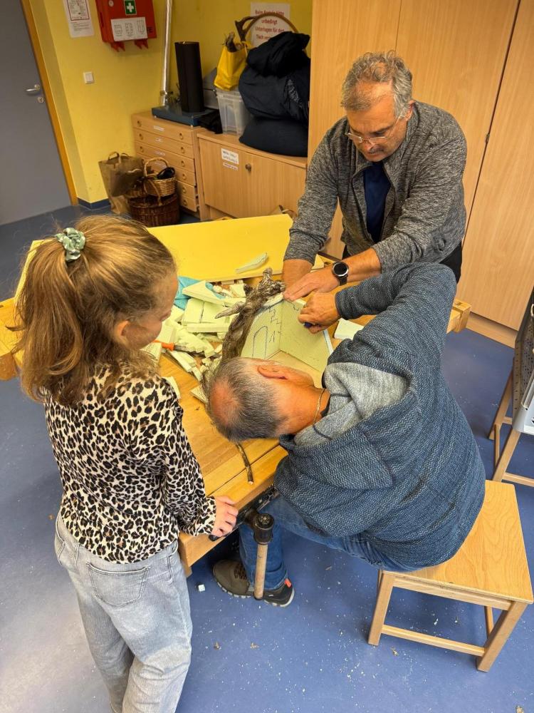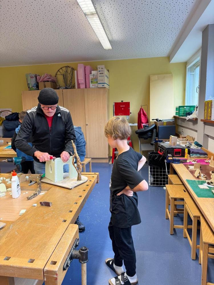 Sechs Wochen lang verwandelte sich unsere Schule in eine lebhafte Krippenbau-Werkstatt. Unter der geduldigen, nervenstarken und stets gut gelaunten Anleitung von Sepp, Hermann, Jürgen und Elmar wurde gesägt, gehämmert, geleimt – und hin und wieder auch munter diskutiert.